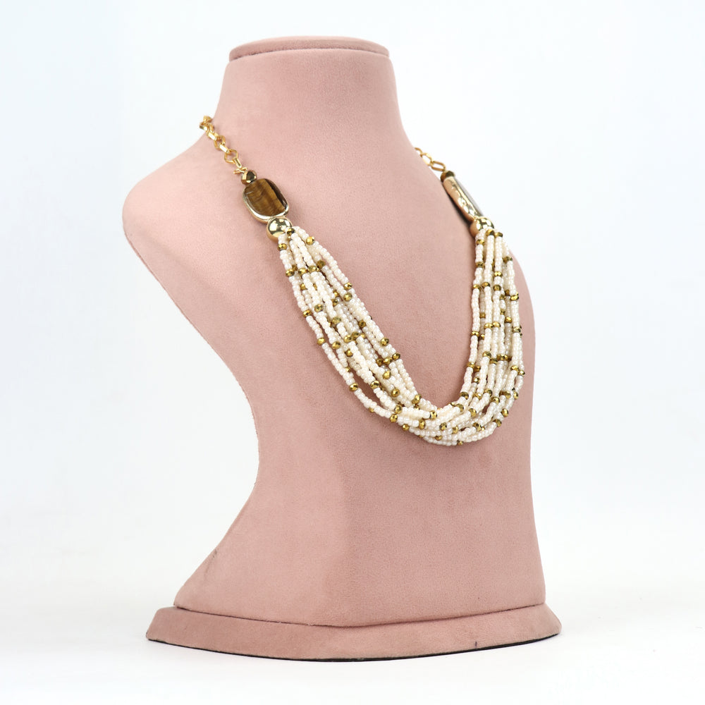 Champagne Elegance Multi-Strand Seed Bead Necklace Set