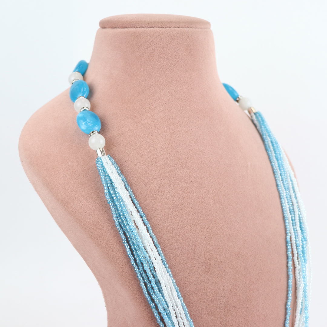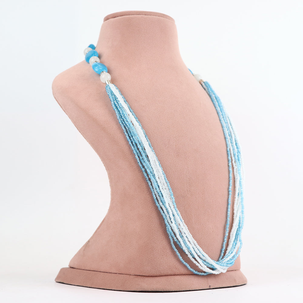 Azure & Frost Multi-Strand Seed Bead Statement Necklace.
