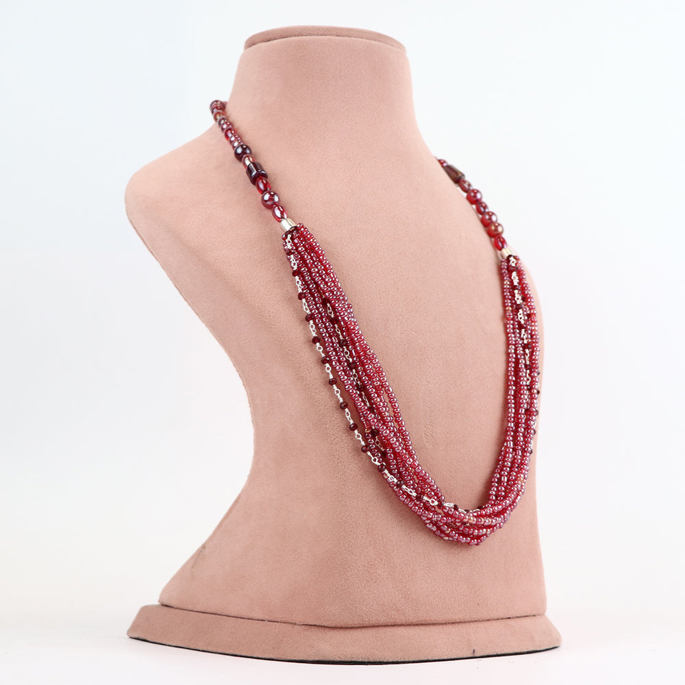 Ruby Radiance Multi-Strand Seed Bead Statement Necklace.