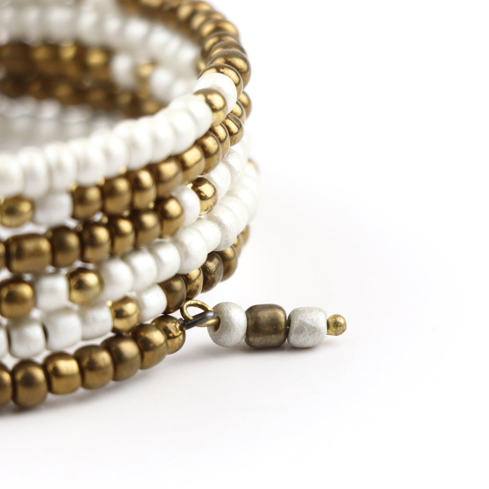 Boho White & Gold Metallic Seed Bead Multi-Wrap Coil Bracelet