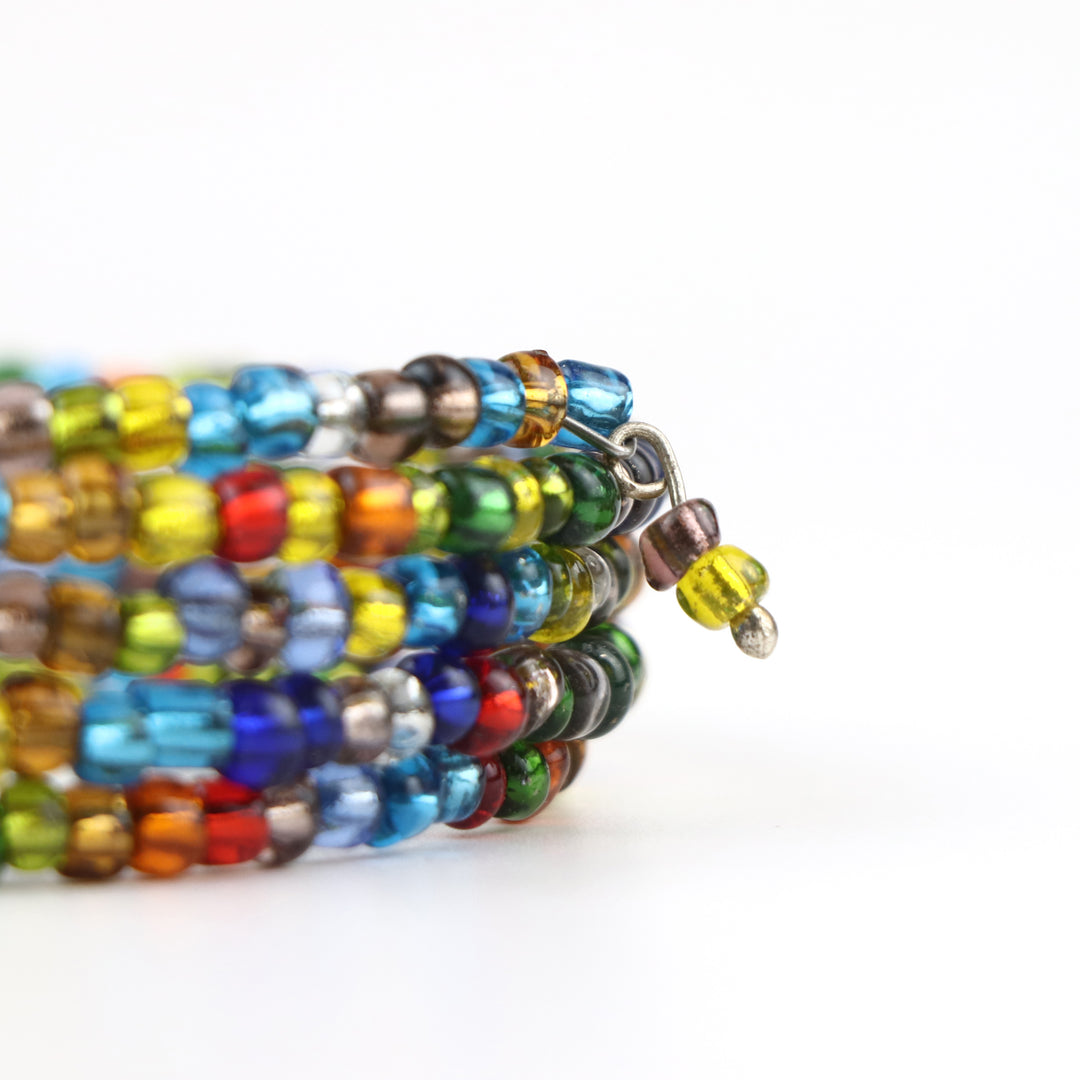 Boho Rainbow Seed Bead Multi-Wrap Coil Bracelet (Vibrant Glass Beads)
