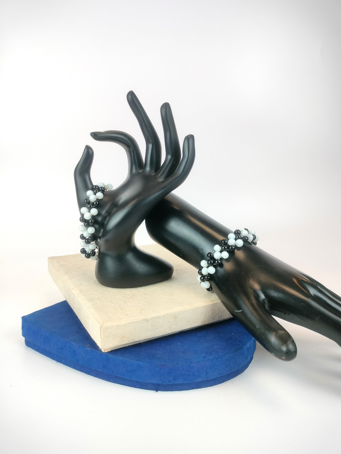 Classic Black and White Beaded Bracelet pack of 2 pic