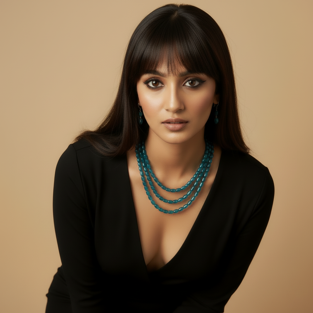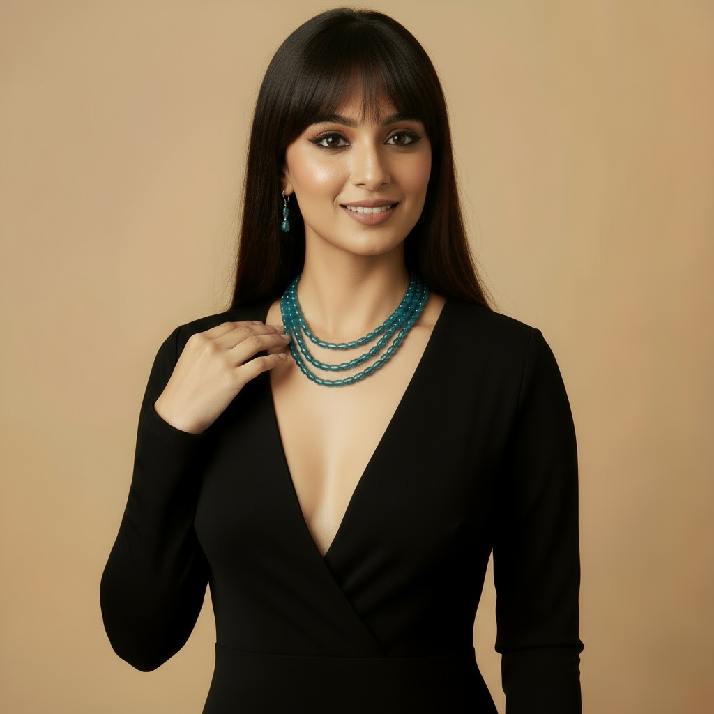 Multi-Strand Teal Faceted Glass Beaded Necklace and Earring Set
