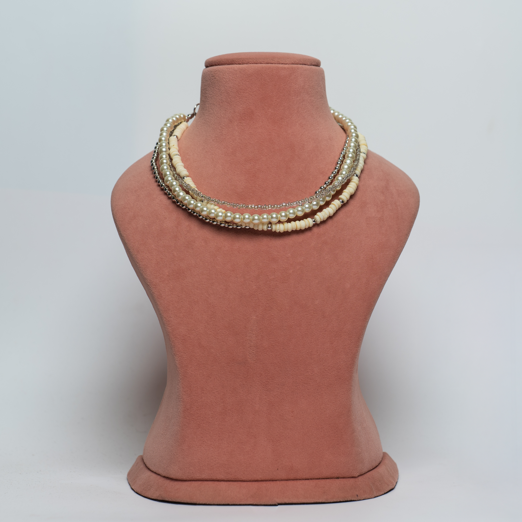Multi-Strand Layered Design, Creamy Ivory Tones, Shimmering Silver Accents, Matching Drop Earrings, Handcrafted Quality