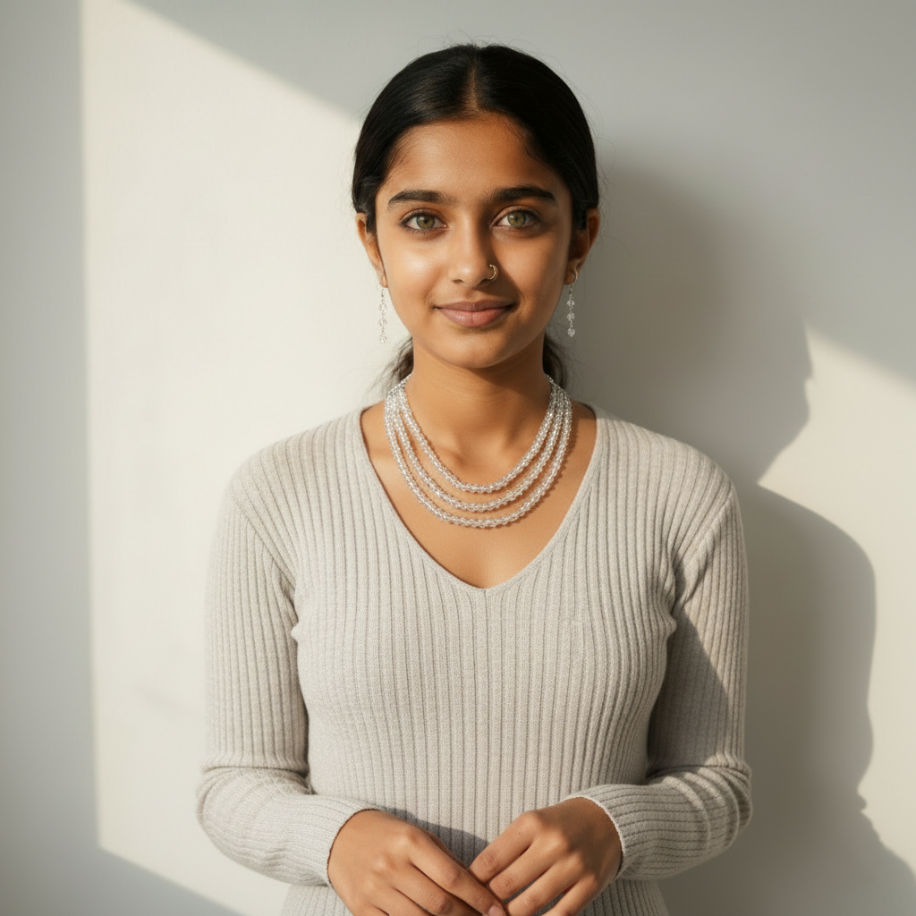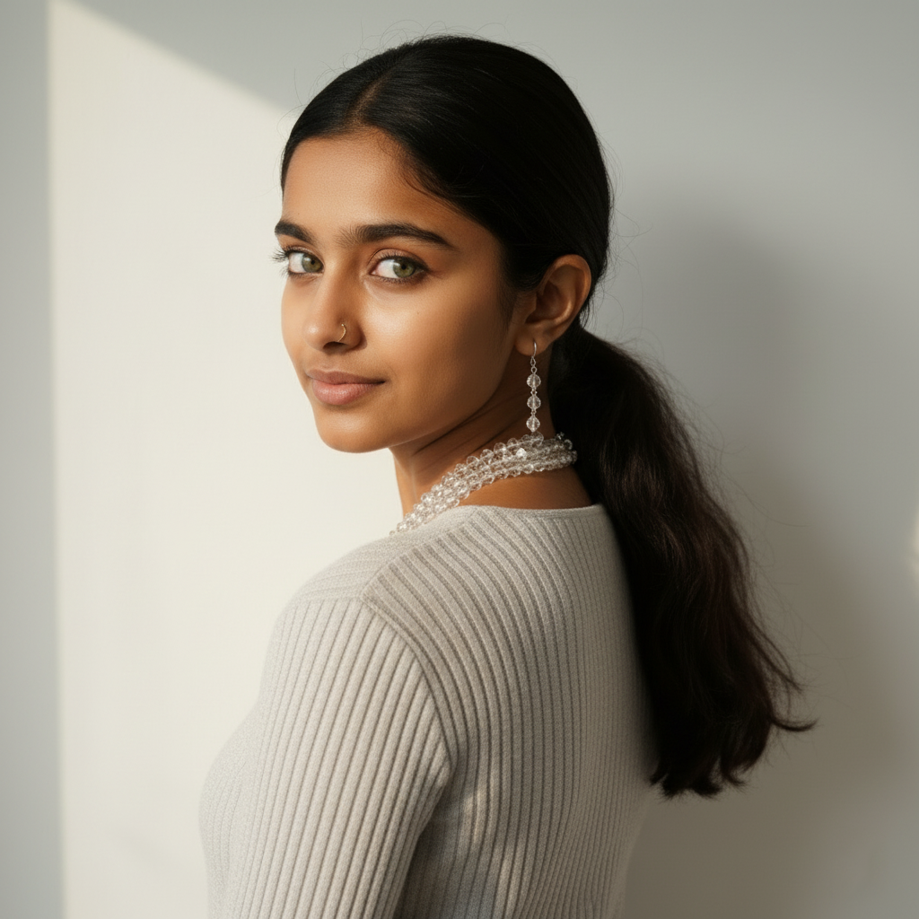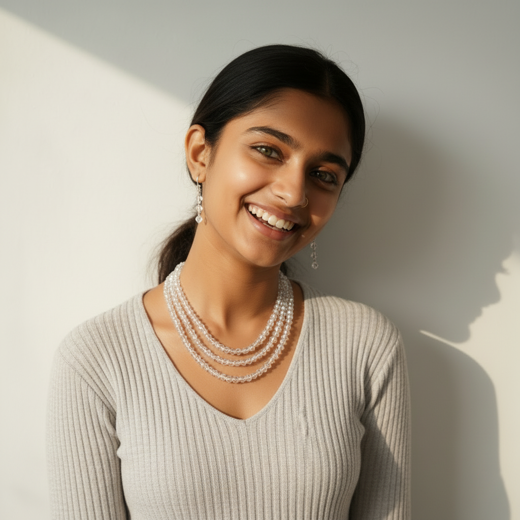 This exquisite jewelry set features a multi-strand necklace and matching drop earrings, crafted from beautifully faceted clear crystal beads. The beads are designed to catch and reflect light, creating a brilliant and eye-catching sparkle.