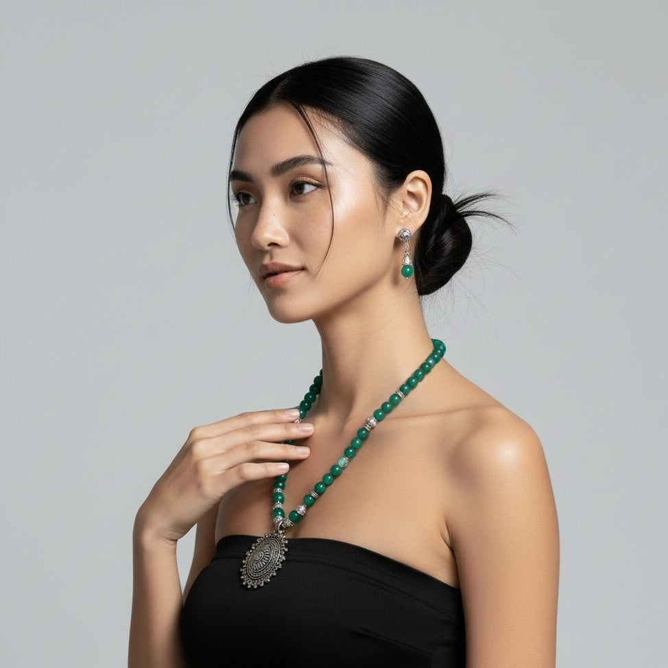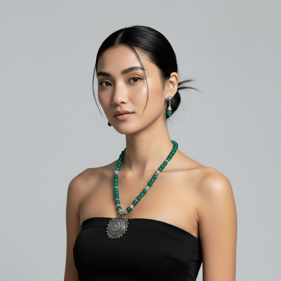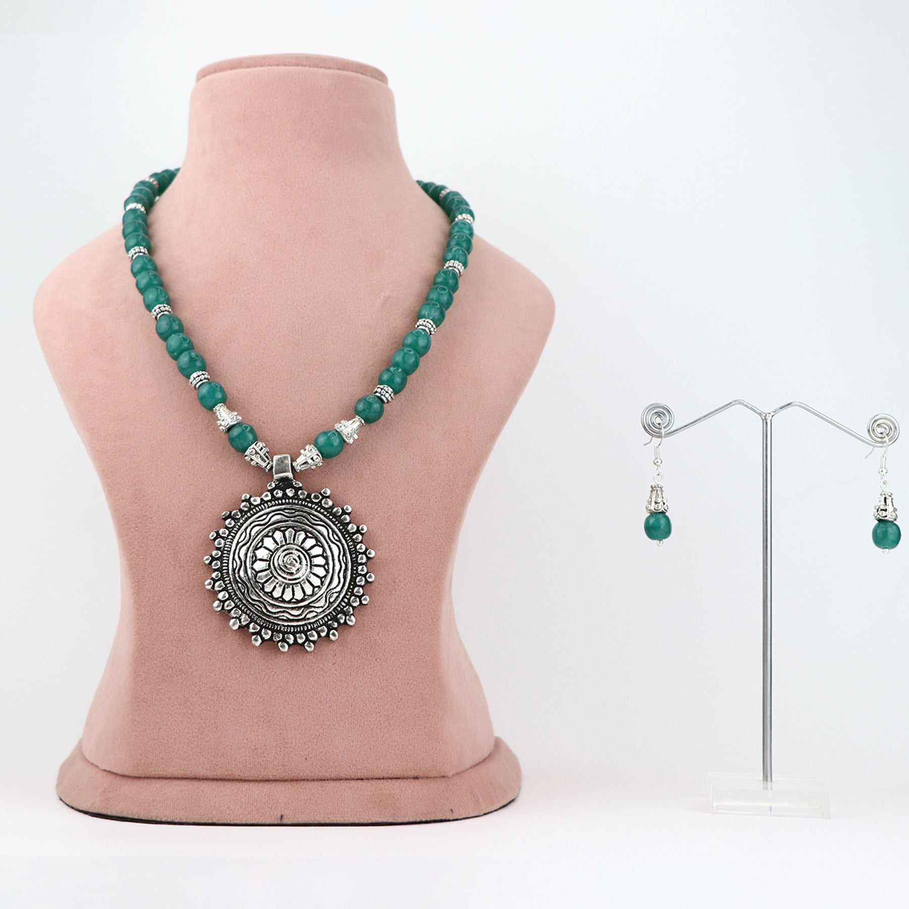 Handcrafted, Oxidized Silver Pendant, Matching Set, Bohemian-Inspired Style, Party & casual Wear
