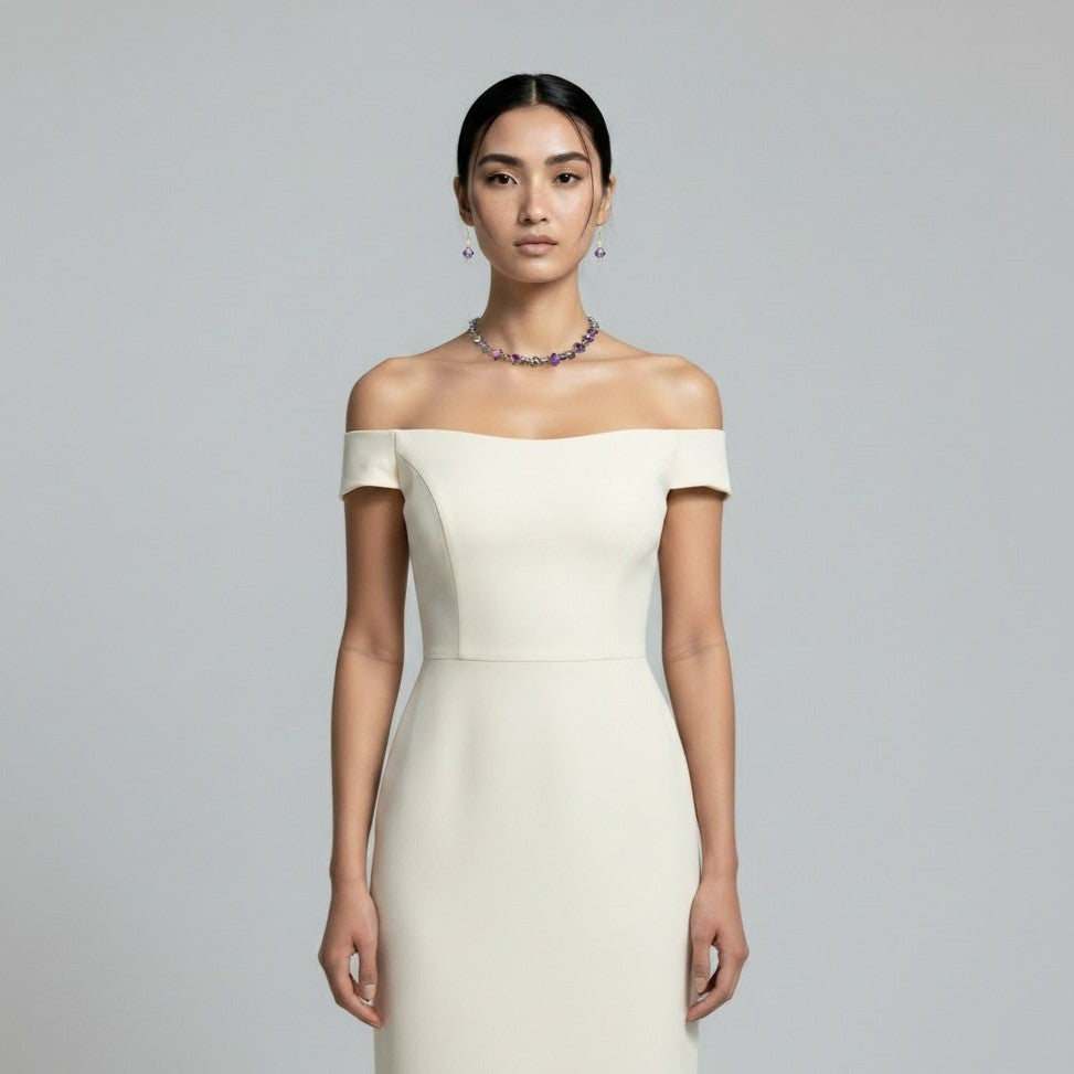 Faceted Crystal Beads, Iridescent Finish, Matching Set, Choker-Style Necklace ,Light-Reflecting Shine , party & casual Wear