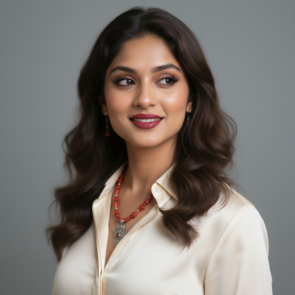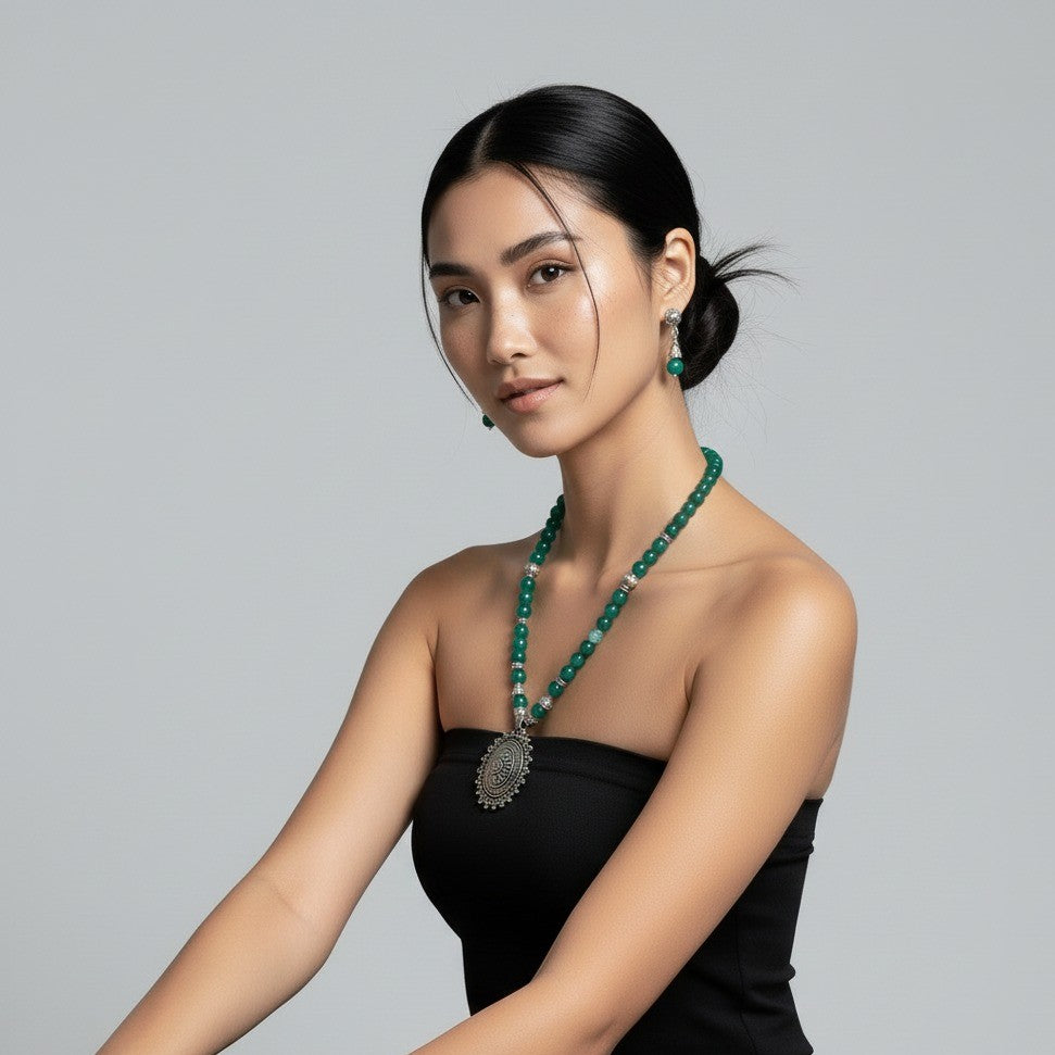 Red Glass Bead Necklace with Oxidized Silver Pendant and Earring Set